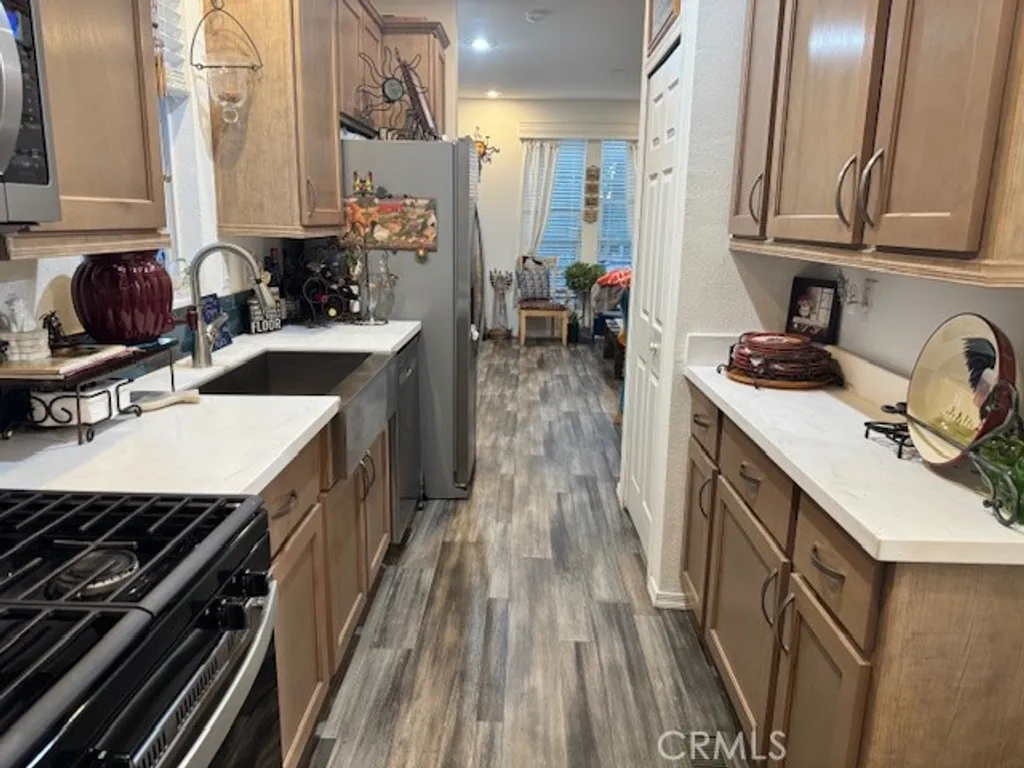 Come see this stylish 1-bedroom, 1-bath Cavco home built in 2022, packed with upgrades - stainless appliances, farmhouse sink, vinyl plank flooring, solid surface counters, high ceilings, and dual-pane windows. Located in a well-kept family community with low space rent and a BBQ area, this move-in-ready home sits near shopping, dining, and more on the Whittier/La Habra border. A must-see modern home at a desirable location!